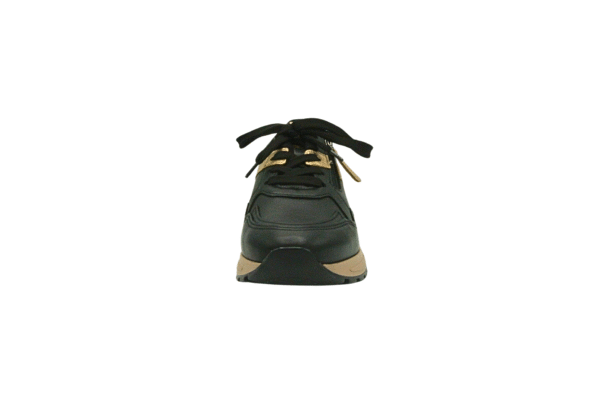Deze sneaker in de kleur zwart met accent goud is van het merk Gabor. De rubberzool zorgt voor voldoende grip en demping tijdens het lopen. Deze veterschoen met functionele rits is geschikt voor steunzolen.