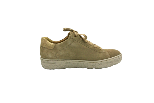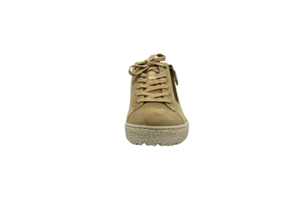 Deze sneaker van het mark Hartjes is in de kleur birke/gold. De rubber zool zorgt voor voldoende grip tijdens het lopen. Deze veterschoen met functionele rits is geschikt voor steunzolen.