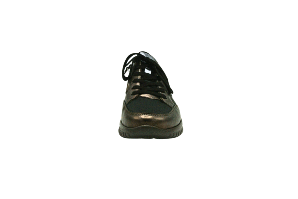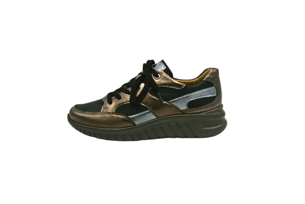 Deze veterschoen in de kleur zwart/bronze is van het merk Hartjes. De rubber zool zorgt voor voldoende grip en demping tijdens het lopen. Deze sneaker met functionele rits is geschikt voor steunzolen.