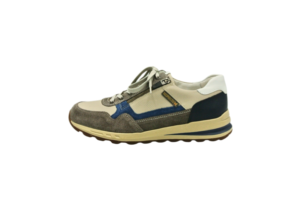 Deze veterschoen van het merk Mephisto is in de kleur beige-bruin-blauw. De rubber zool zorgt voor voldoende grip en demping tijdens het lopen. Deze sneaker met functionele rits is geschikt voor steunzolen.